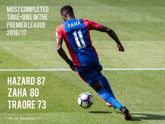 And he’s been the Eagles' best player by some way for the last year or so. He single-handedly dragged them to the FA Cup final and in 2016/17 has notched six assists and four goals, shutting down talk of a lack of end product. He has completed the second most take-ons and is the second most fouled player (both behind Hazard) which goes some way to explain how much attention other teams give him.